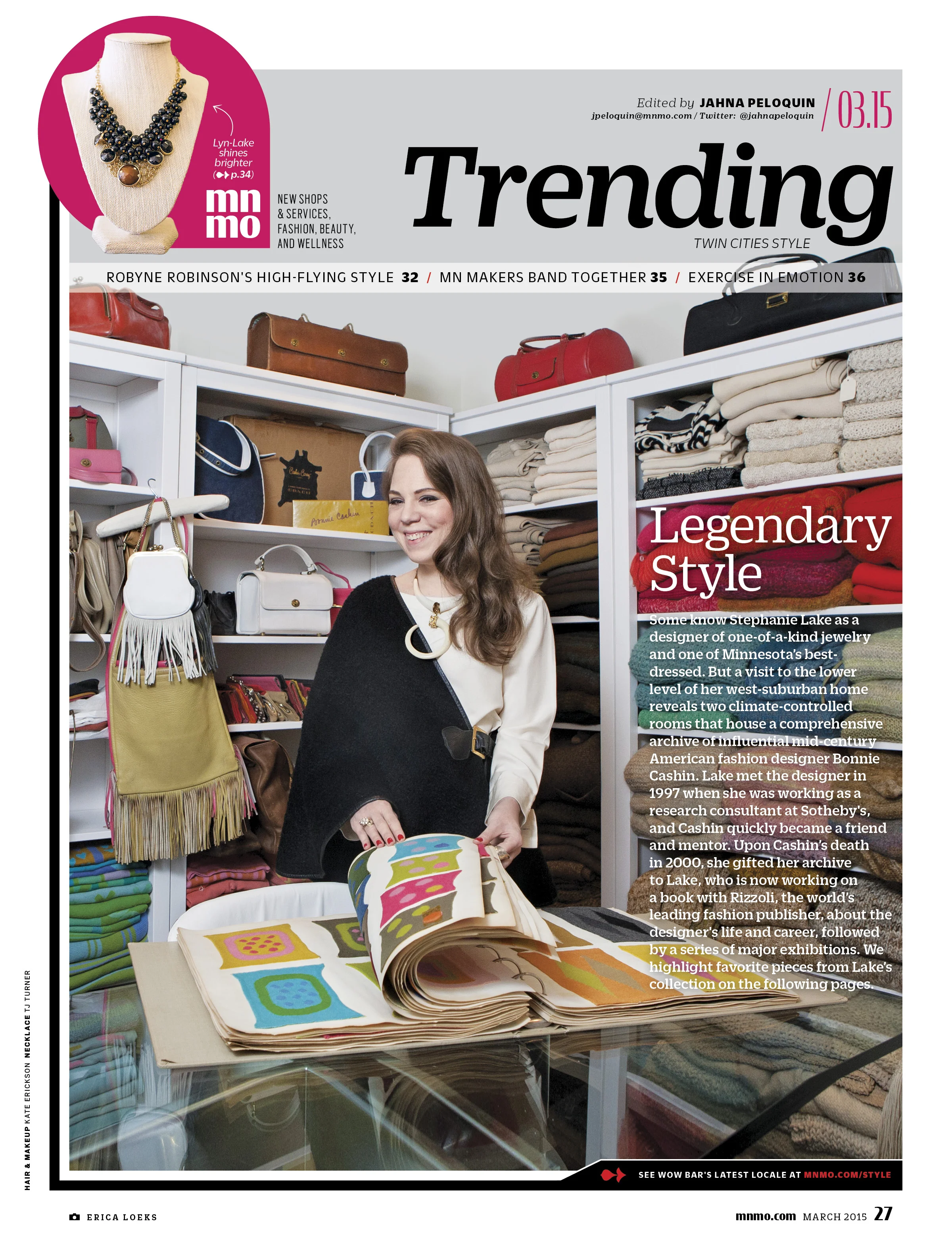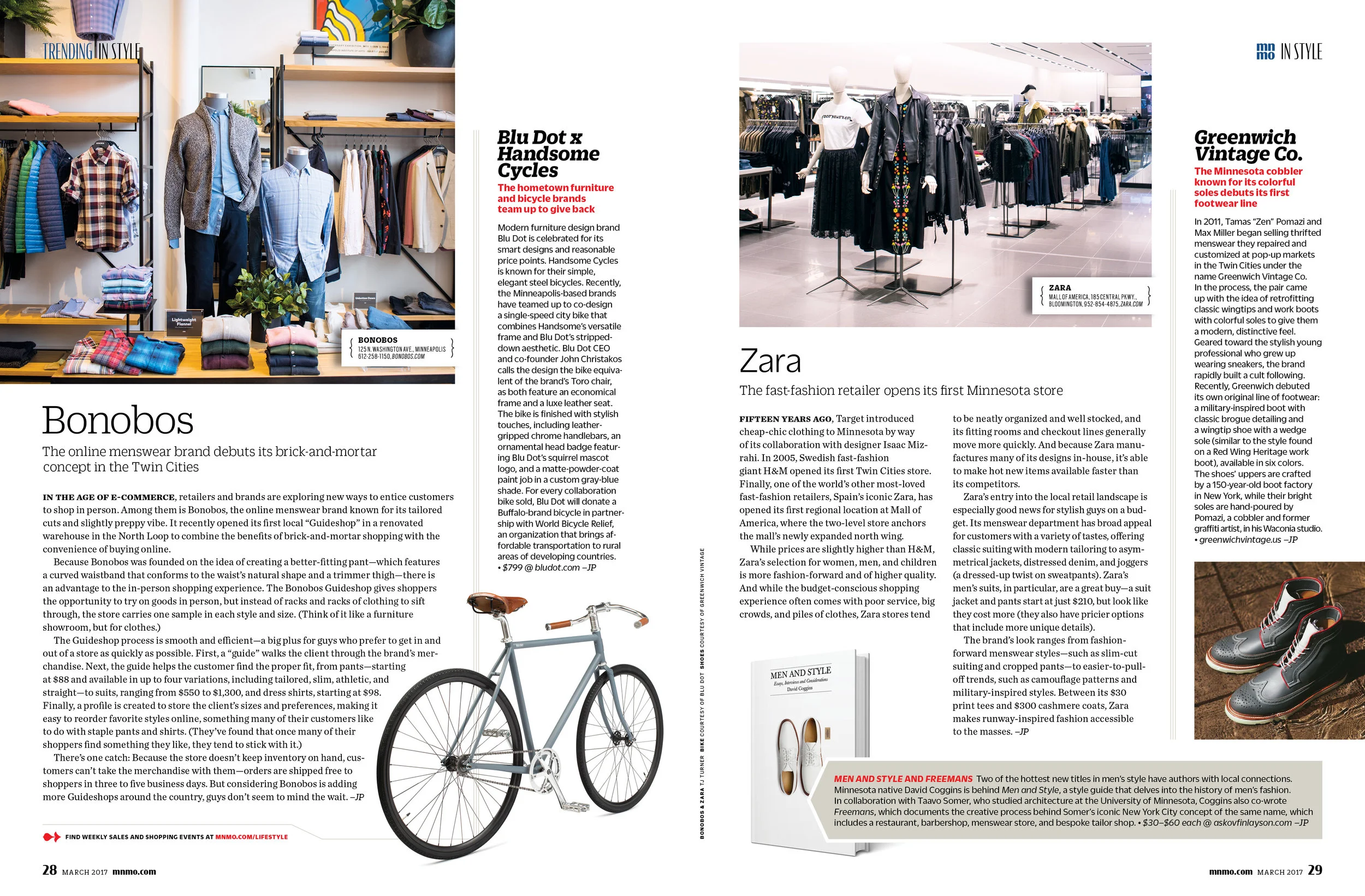 As the Style section Editor for regional magazine Minnesota Monthly, I wrote headlines and articles about fashion, retail, beauty and home interiors from a local angle, as well as a monthly style column. Below is a small selection of my work from 2014 to 2017.