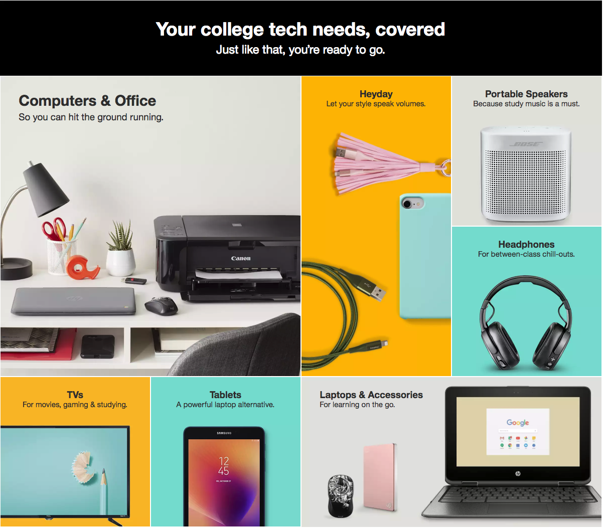COPY FOR ELECTRONICS, ENTERTAINMENT, SPORTS & OUTDOORS, AND TOYS categories on target.com,